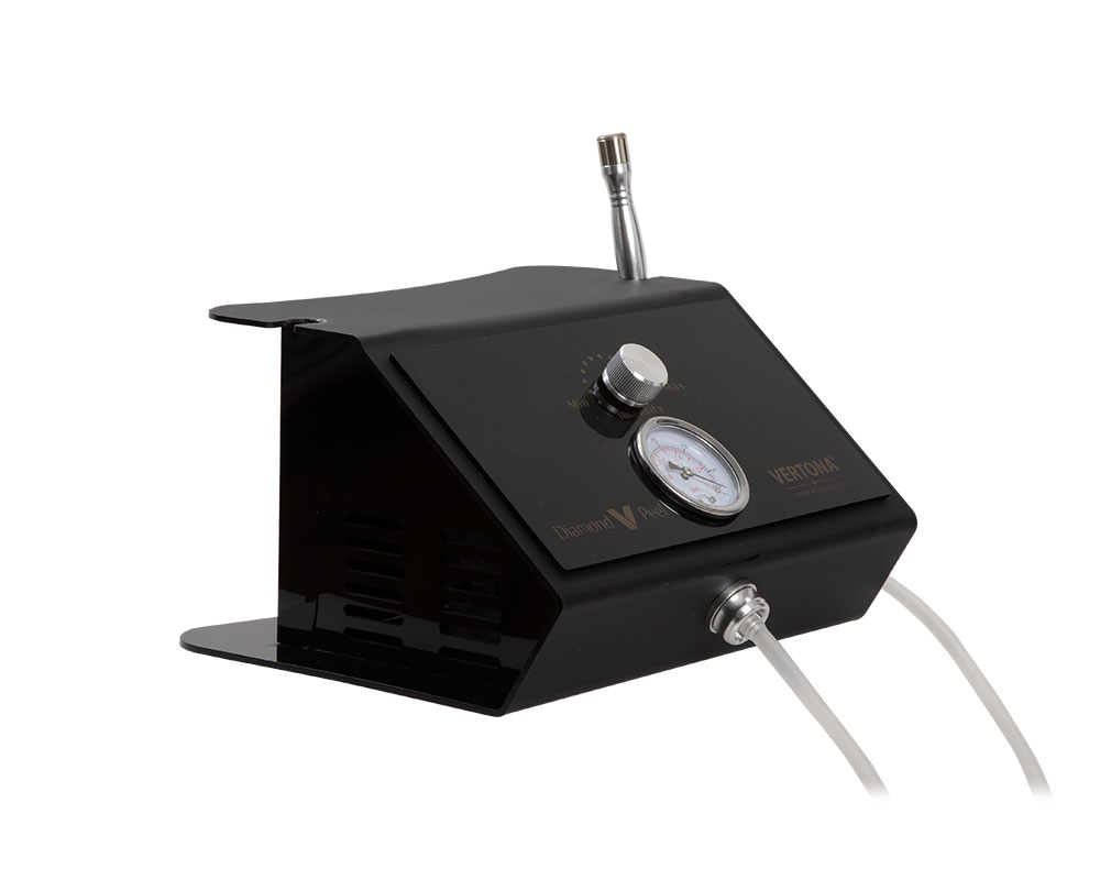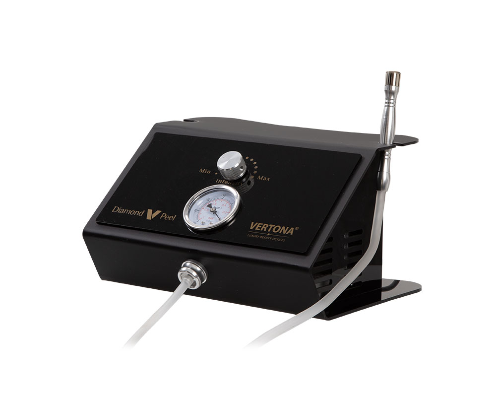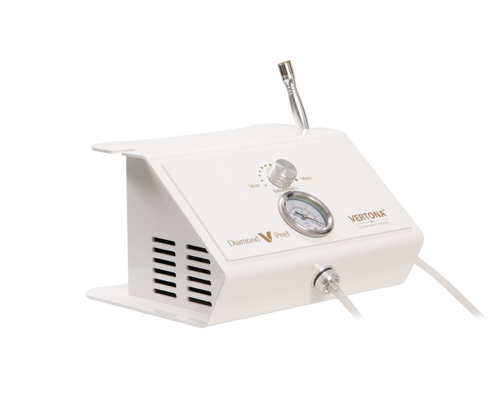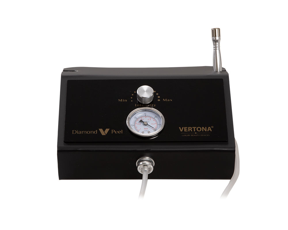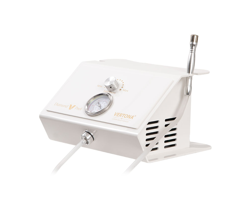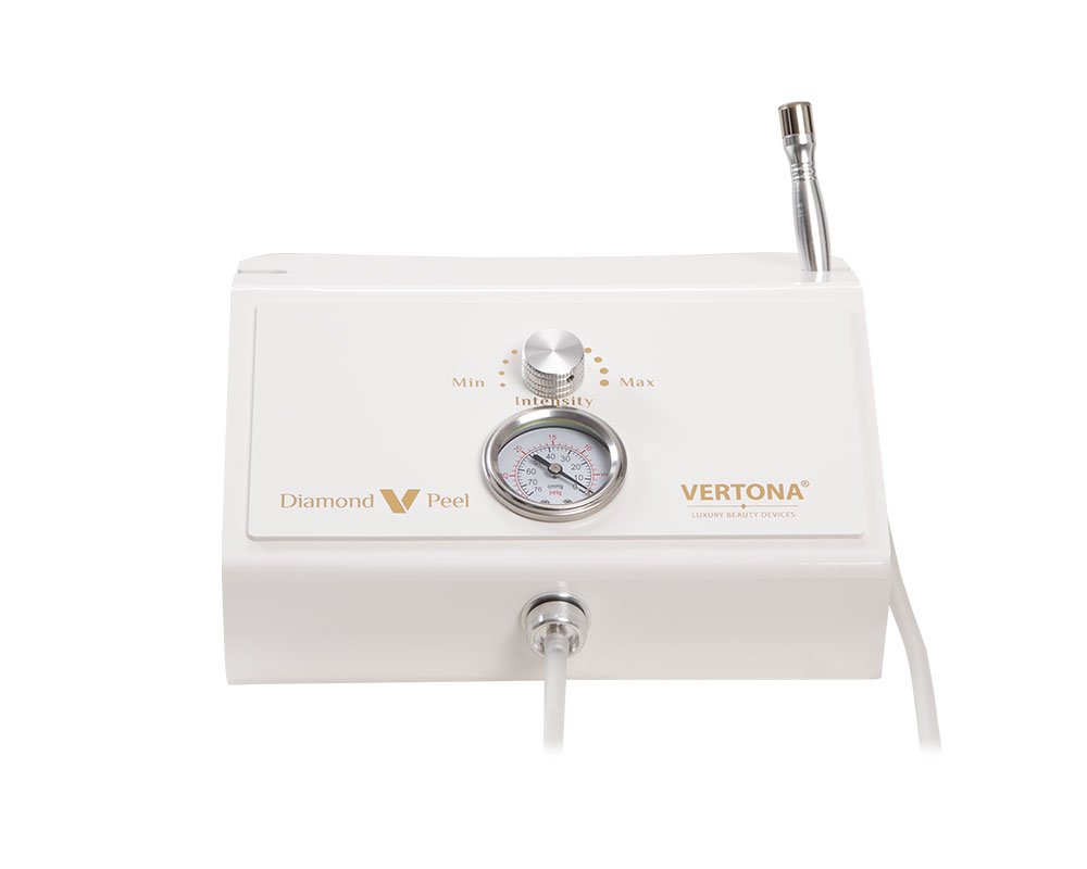 Diamond V Peel kozmetički aparat Vertona koristeći podesivu vakumsku stimulaciju u kombinaciji sa dijamantskim nastavcima vrši eksfolijaciju, dubinski čisti pore, stimuliše proizvodnju novog kolagena i ubrzava mikrocirkulaciju.