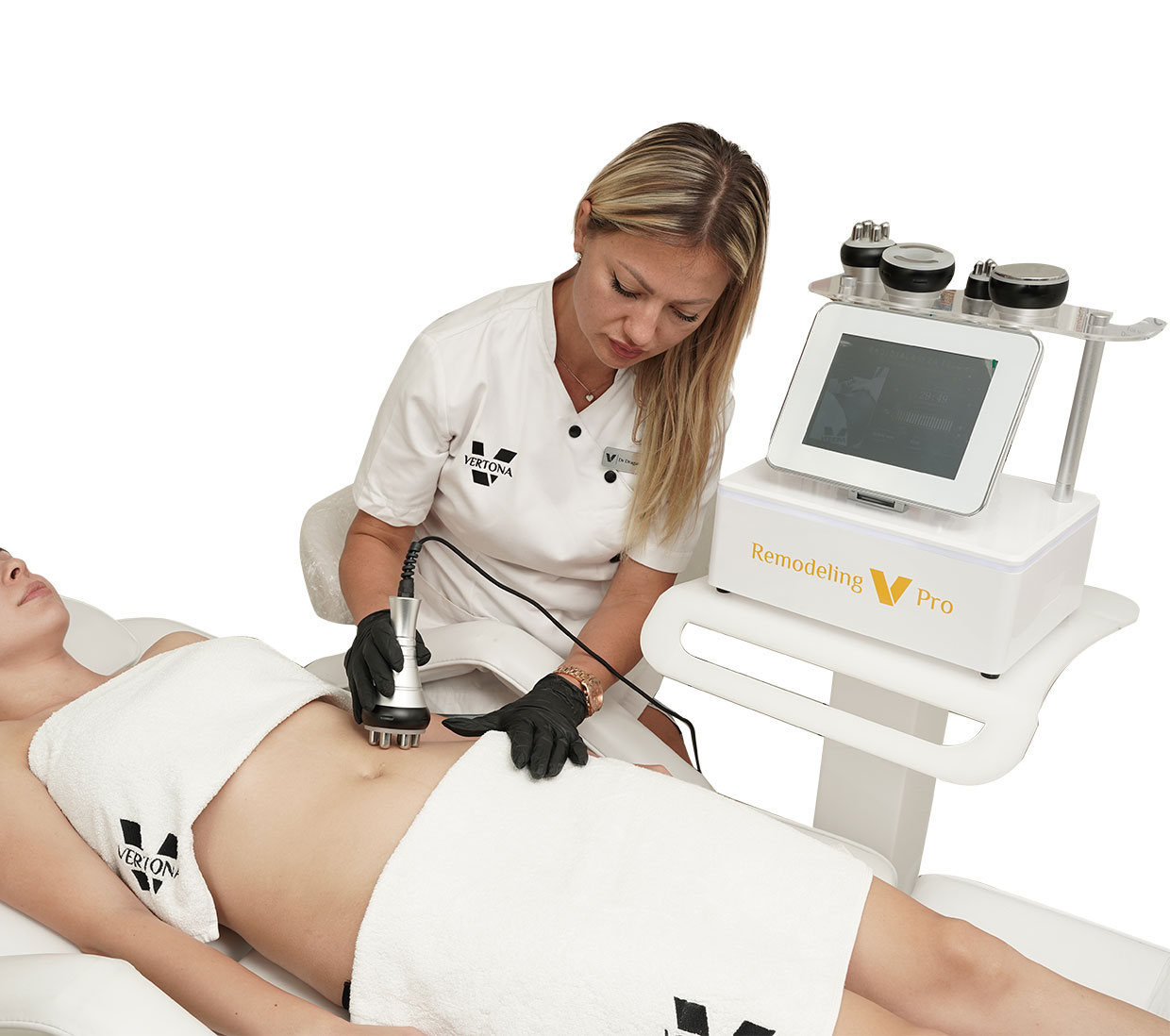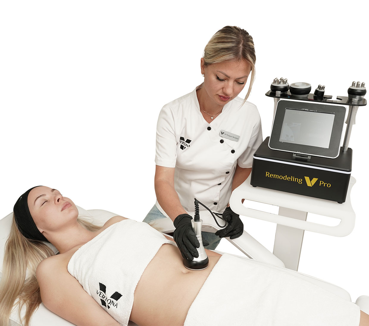 Remodeling V Pro je multifunkcionalni aparat za lice i telo 5 u 1. Aparat koristi najmoćnije tehnologije za tretmane lica i tela, kao što su ultrazvučna kavitacija, radiofrekvencija (radiotalasi) i vakum terapija sa bipolarnom radiofrekvencijom (bipolarnim radiotalasima). Ova inovativna tehnologija za tretmane lica i tela nam omogućava da se u kratkom vremenu izgubi težina, redukuje celulit i zategne koža.