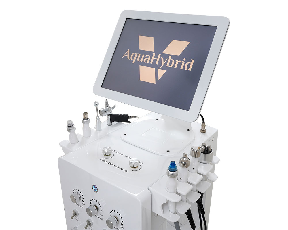 Upoznajte revolucionarni kozmetički aparat, Aqua Hybrid, koji podiže standard nege kože na potpuno novi nivo. Ovaj multifunkcionalni uređaj koristi najsavremeniju tehnologiju kako bi vam pružio potpuno personalizovan tretman lepote. Sa sofisticiranim sondama koje uključuju hidroabraziju, dijamantsku mikrodermoabraziju, kiseonik sprej, aqua jet, infuziju kiseonikom, radiotalase za lice i ultrazvuk za lice i regiju oka.