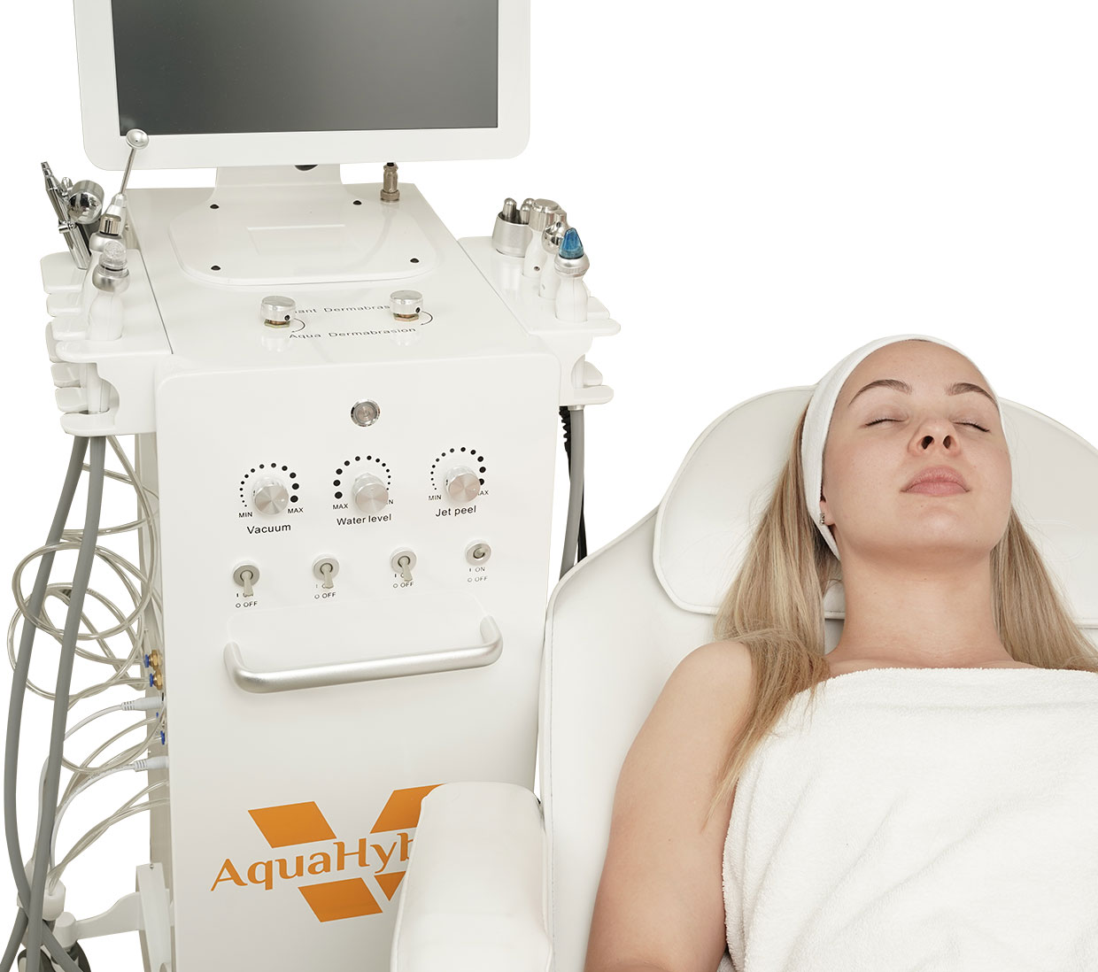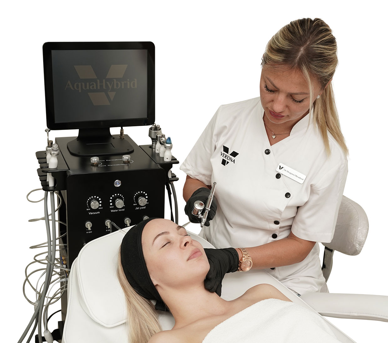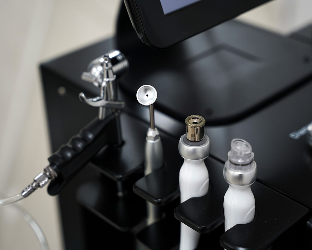 Iskusite dubinsko čišćenje i obnavljanje kože putem hidroabrazije i dijamantske mikrodermoabrazije, oslobađajući kožu od nečistoća i mrtvih ćelija. Kiseonički sprej i aqua jet pružaju intenzivnu hidrataciju i osvežavajući podsticaj, dok infuzija kiseonikom prodire duboko u kožu, obnavljajući je iznutra.