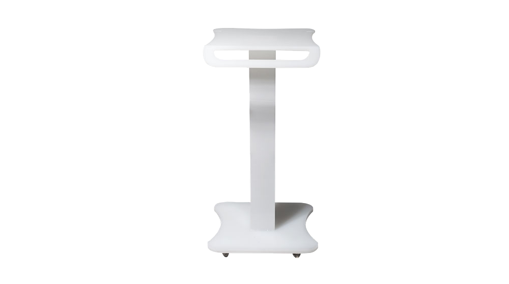 Univerzalni stalak za kozmetičke aparate napravljen je od kvalitetne plastike. Nosivost je do 40kg. Poseduje namenske držače kablova za napajanje sa obe strane gornje ploče.